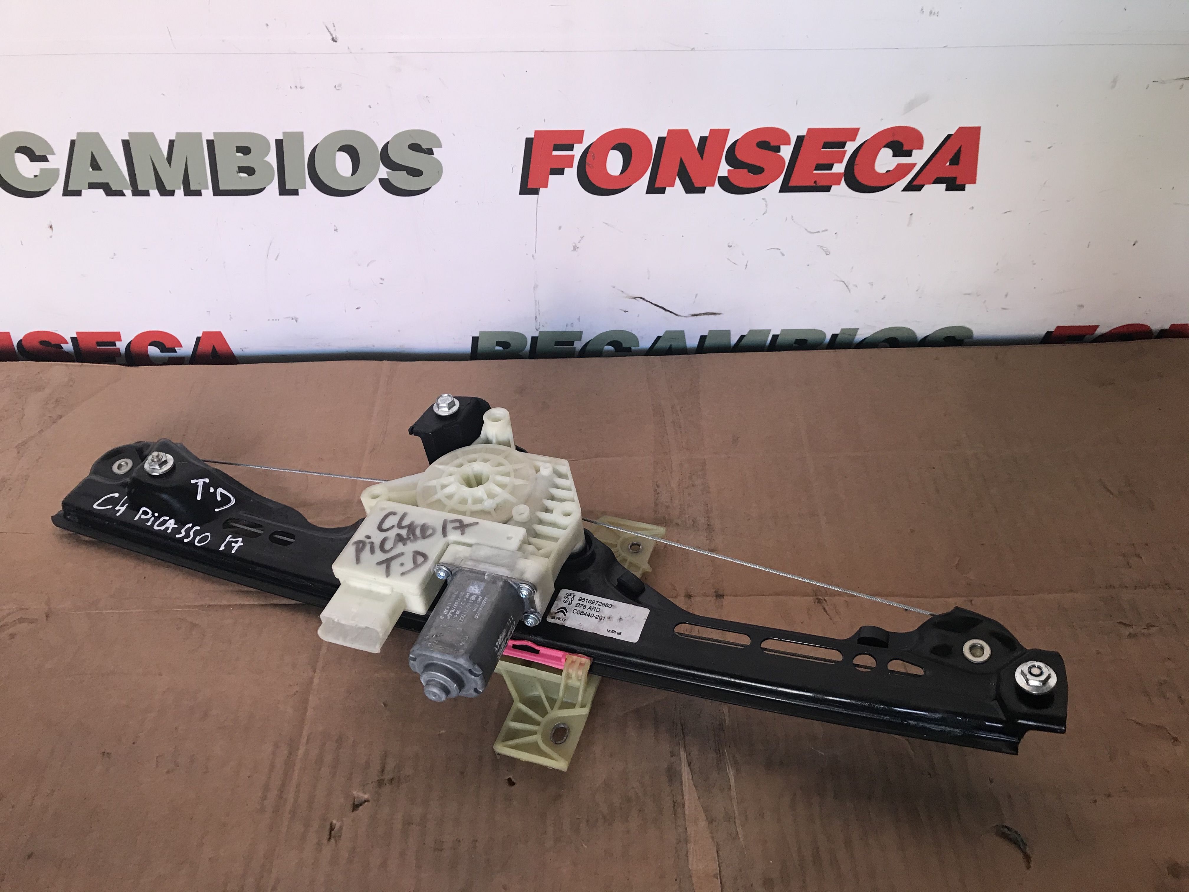 ELEVALUNAS TRASE RO DERECHO CITROEN C4 PICASSO II 2017 Estructura 9816272680 + Motor 9816271380 - CERRADURA TD 9810310780 - EMBELLECEDOR VENTANA CROMADO 9677094680