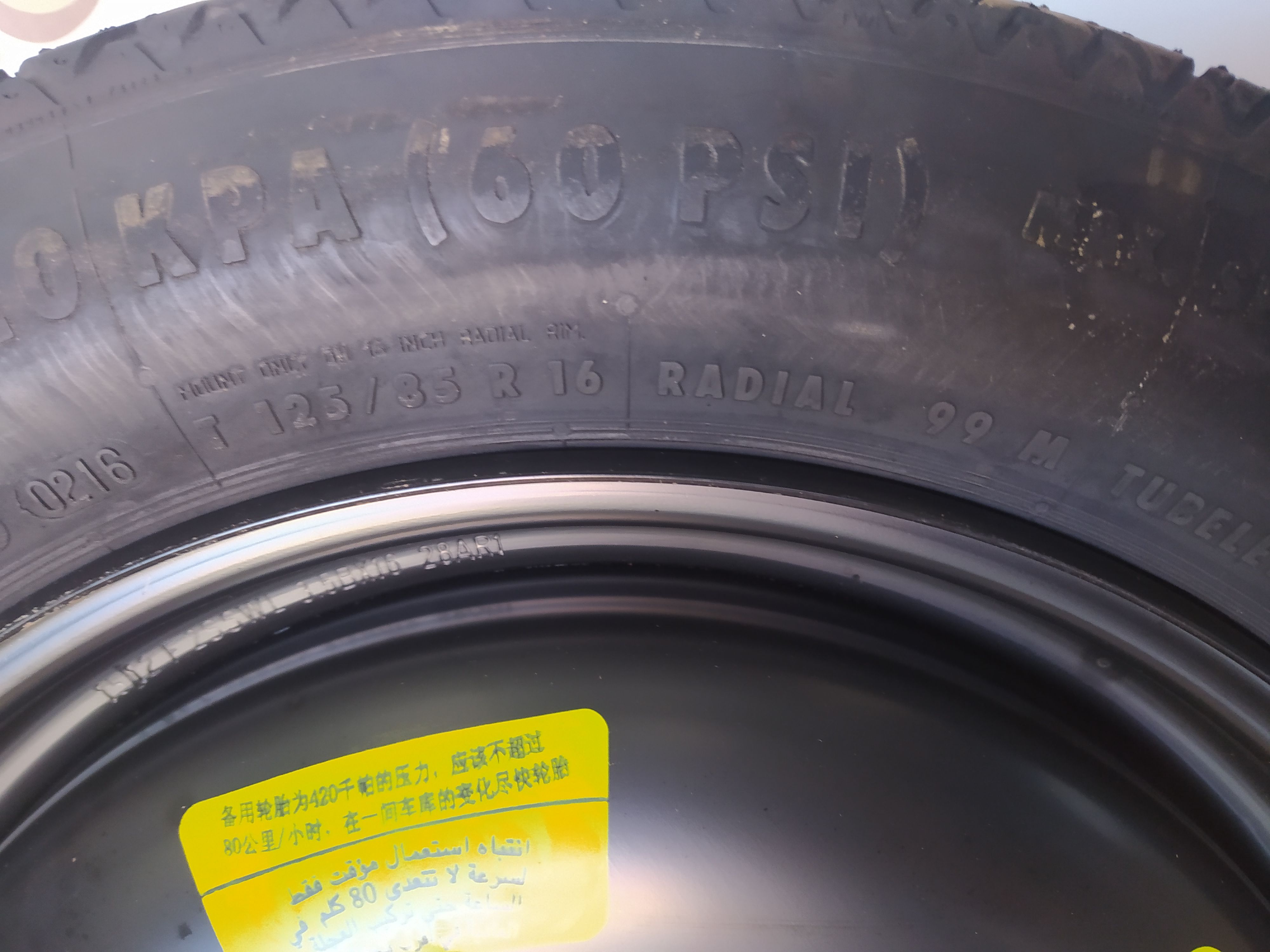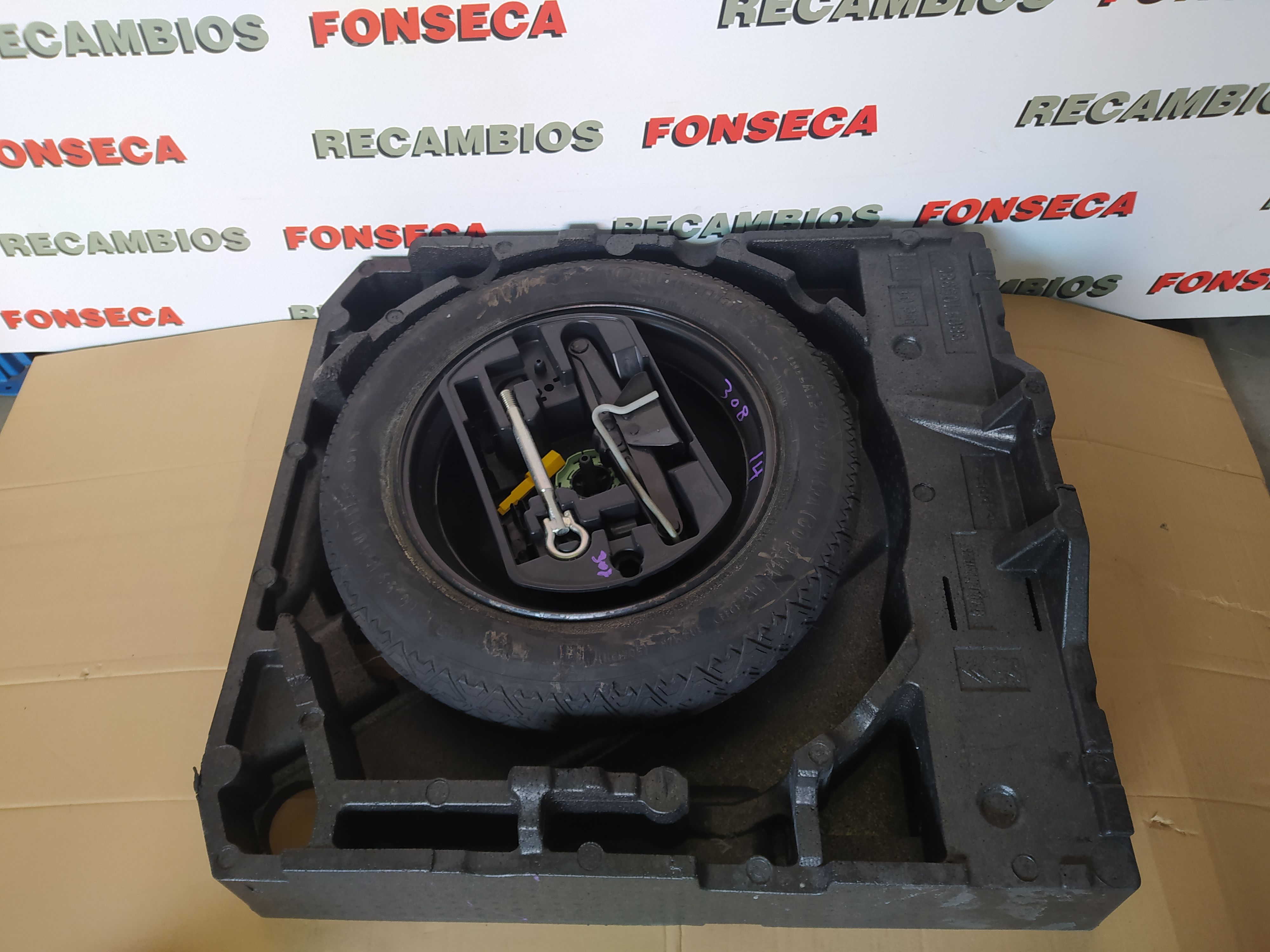 GALLETA NUEVA CON GATO Y LLAVES EN SOPORTE ORIGINAL DE PEUGEOT 308 SW 2014 Neumático Continental 125/85 R16 99M